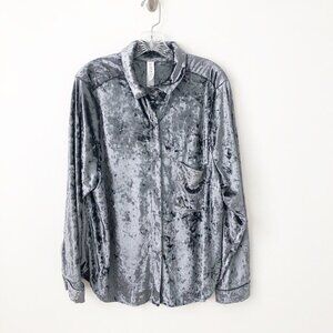 NWT Anthropologie Velvet Button Down Shirt XXSP Silver $130 Petite
