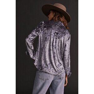 New with tag. Anthropologie Amadi Velvet Button Down Shirt. Size XXSP. Color - silver. Retail $130.