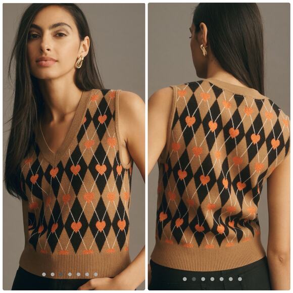NWT Anthropologie Vera Jacquard Sweater Vest in Heart Print
