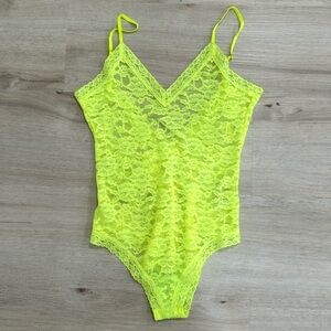 NWT Anthropologie V-neck sheer lace neon bodysuit