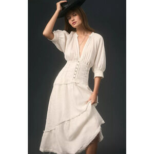 NWT Anthropologie White Corset Midi Shirt Dress - Large