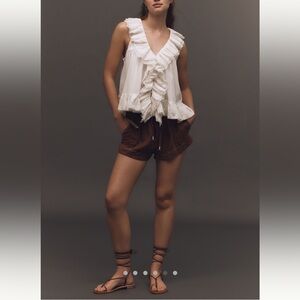 Anthropologie White Embroidered Sheer Ruffle Swing Top