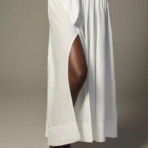 NWT Anthropologie White Poplin Side-Slit Front-Tie Skirt Large