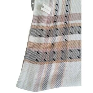 NWT Anthropologie Women's Scarf White Gray Jeweled Plaid Long Neutral Preppy