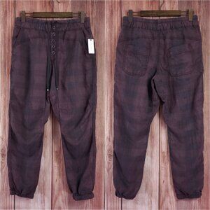 NWT Anthropologie Womens Size Small Jacquie Button Fly Joggers Pants Plaid Plum