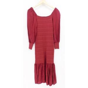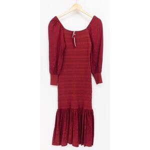 NWT Anthropologie Women's Smocked Puff-Sleeve Midi Modest Dress Wine Size MP
