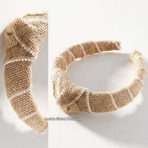 Brand new with tags NWT Anthropologie Woven Embellished Pearled Jute Headband. Faux pearl embellishments imbue this textural headband with a sweetly chic finish.