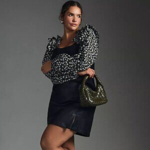 NWT Anthropologie Woven Ruffle Sleeve Sweater - Black Floral - Small