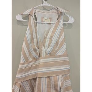 New with tags! Anthropologie Maeve striped asymmetrical halter neck shirt dress. Size 6.