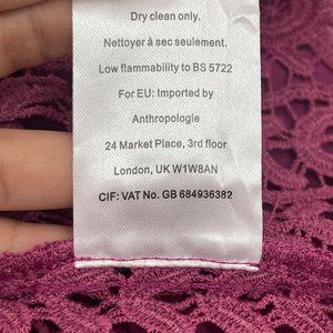 NWT Anthropologie by Chloe Oliver Women's Purple Boho Bell-Sleeve Lace Blouse Size XS. You need an undershirt, does not come with one. Aprox measurements: Armpit to armpit is 17" inches. Length is 21.5" inches. Sleeve is 22" inches. Great condition. Please look at pictures for better reference. Let me know if you have any other questions. Happy Shopping! NFEB25. T8