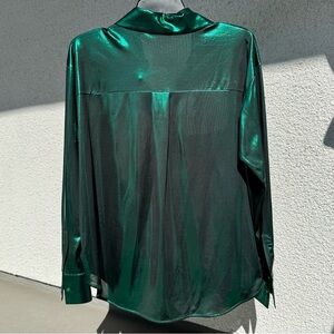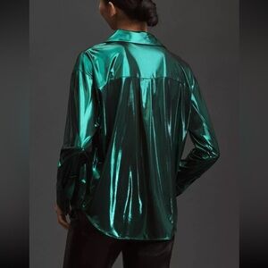 NWT Anthropologie green shiny Button‎ down Shirt size small