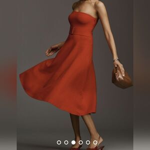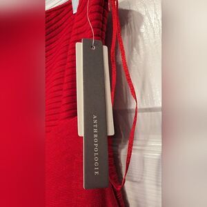 New Anthropologie Strapless red belted open back side zipper A-line Midi Sweater cocktail party date night Dress size Large. Falls 35" long. Viscose, polyamide, elastane