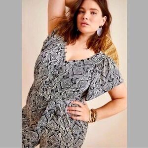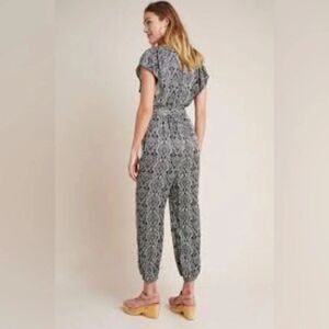 NWT Anthropologie satin Zadie black & white floral Jumpsuit with pockets size 14