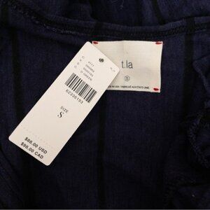 NWT Anthropologie t.la Ruffle Sleeveless Knit Top S Blue Black Striped