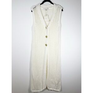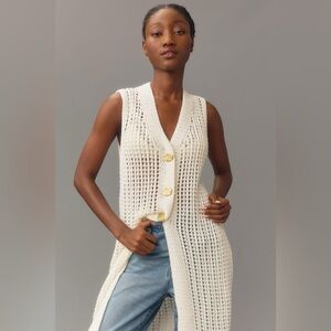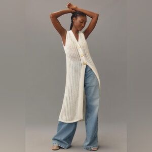NWT Anthropologie x Flat White Long Line Open-Knit Cardigan Sweater Vest Boho