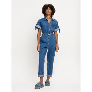 NWT Anthropologie x KIVARI Natalie Short-Sleeve Denim Jumpsuit $300 XXS US Sz 0