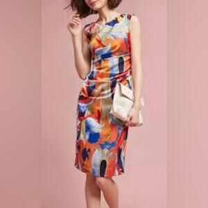 NWT Anthropologie x Nicole Miller Abstract Print Veronica Rouched Column Dress 8