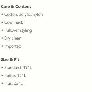 Brand New with Tags Anthropologie Dolan Left Coast Cowl Neck Pullover Black Sweater Size 3X. Absolutely classic, timeless and minimalist. Raglan sleeves, cowl neck, Moto style. Matches everything in black and versatile from jeans to skirts, office to a night out. Excellent Condition. Item is from a pet and smoke free home.