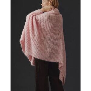 NWT Anthropologie Funnel-Neck Poncho One Size Pink/Rose Handcrafted Fuzzy Knit
