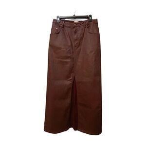 NWT Anthropology Burgundy Madi Front Slit Coated Denim Skirt Size 14