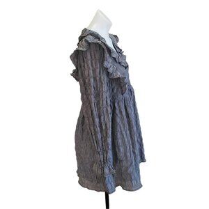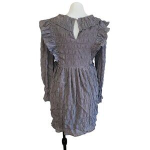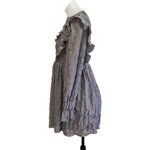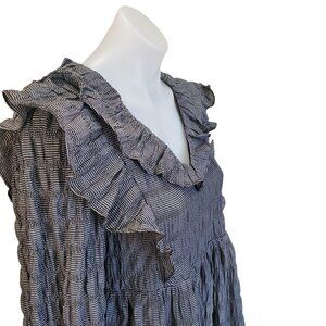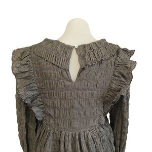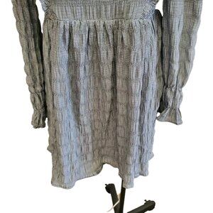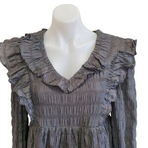 NWT Anthropology Moon River Black White Gingham Ruffled Long Sleeve Mini Dress S