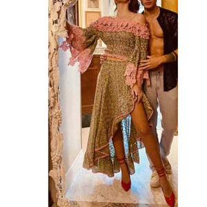 NWT Antico Sartoria 2-Piece Crop Top + Maxi Wrap Skirt Set Eyelet Lace, One Size