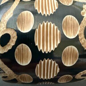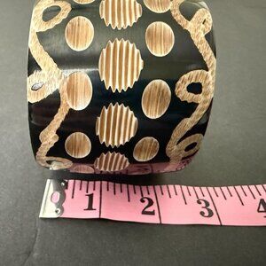 An elegant wide bangle featuring a black and tan carved design, adding a bold yet sophisticated touch to your accessories collection.