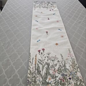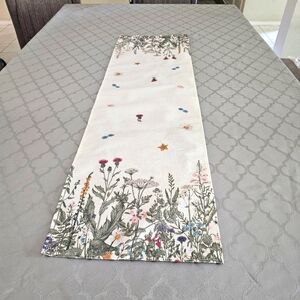 NWT Antique Herbs & Wild Flowers Summer Table Runner 13x48 inch Off White