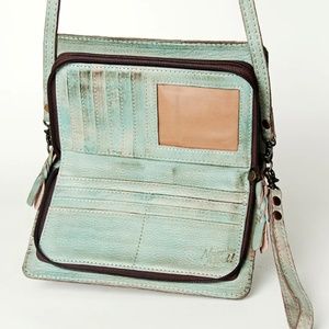 NWT - Antiqued Teal Leather Crossbody Wallet Organizer