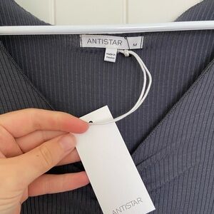Women’s Antistar top. Top is dark gray with ruched tie design. Cropped cut. Size medium smoke free home!