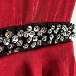 New with tags Antonio Melani Claudette Red Midnight Muse Ruffles Sheath Sequin Beaded Midi Dress