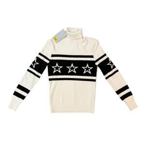 NWT Antonio Melani White Black Stars Turtleneck Mock Neck Sweater Size XS NEW