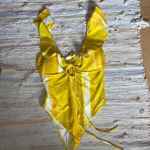 NWT Antonio Melani Yellow Watercolor Stripe One Piece Swimsuit Size XL