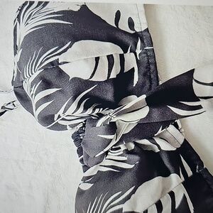 NWT Ao Mao Two Tone Floral Black and White Women's Front Tie Top Large