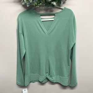 NWT Apana Yoga Long Sleeve Top Back Cutout and Twist Detail Feldspar Green M