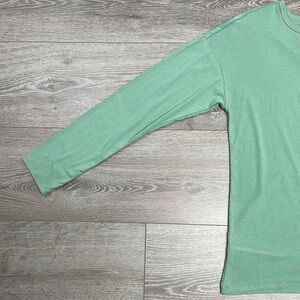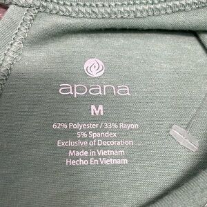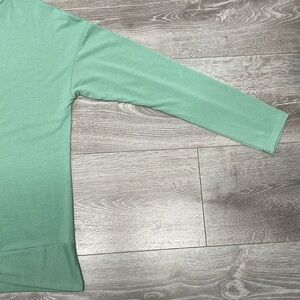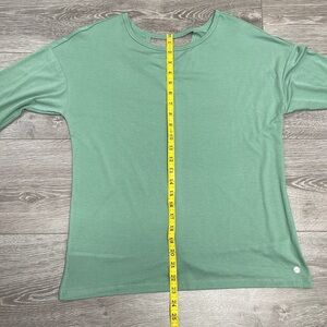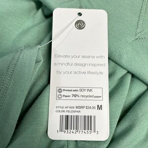 NWT Apana Yoga Long Sleeve Top Back Cutout and Twist Detail Feldspar Green in size M. Excellent new condition. Please see photos for approximate measurements and details. Item may show difference in color based upon photography and perception. Photos are part of the description, as everyone’s level of condition may vary. From smoke free and pet free home. All packages are shipped the same or next business day.