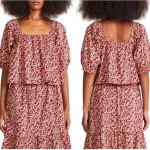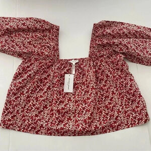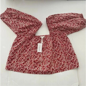 NWT Apiece Apart Gali shirred top Mango Bouquet Floral organic Cotton Blouse