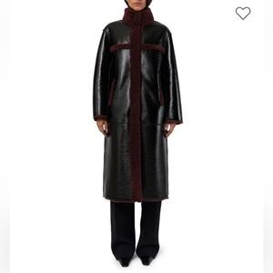 NWT Apparis Tilly Patent Reversible Coat black Burgundy shearling Revolve M