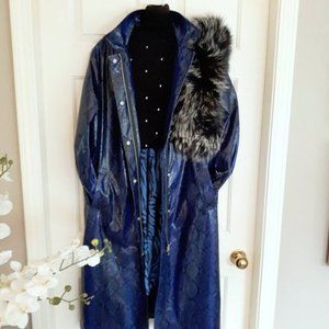 NWT Apparis black and blue snakeskin python faux leather vegan duster jacket