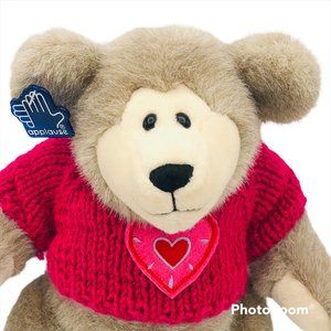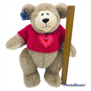 Applause tan teddy bear plush with pink heart sweater. Superior quality, heavyweight bear is fully jointed at head, arms, and legs. Brand new with original tag! Smoke free, pet friendly home.