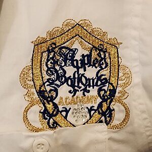 NWT - Apple Bottom Academy Oxford Style Shirt. This is a fun and flirty shirt with added bling. Apple Bottom logo on the front and blinged out on the back.