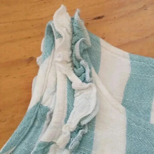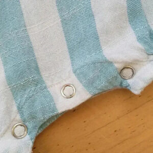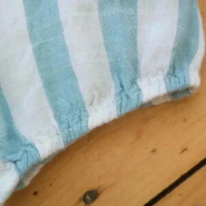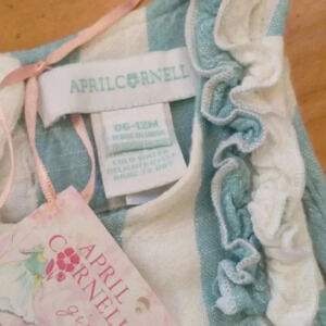 Beautiful lightweight natuckett striped romper. Very lightweight linen with irredecent button back closure. Snaps at crotch. Matching ladies apparel still available on the April Cornell website.