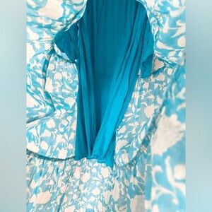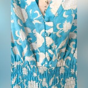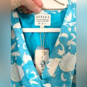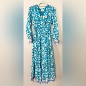 NWT Apsiga Billie Ornate Floral Turquoise 100% Organic Cotton Breezy Maxi Dress