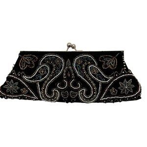 NWT Apt. 9 Black Beaded Evening Handbag Decorative Strap & Snap Closure