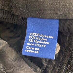 Materials: 78% polyester, 19% rayon, 3% spandex
