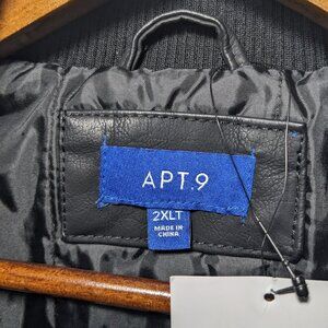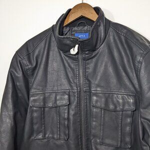 NWT Apt. 9 Men's Faux Leather Bomber Jacket Black Pockets size 2XL Tall