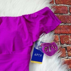 NWT Apt 9 Off-Shoulder Ruffle Tankini Top Swimsuit Swimwear Convertible Strap Small