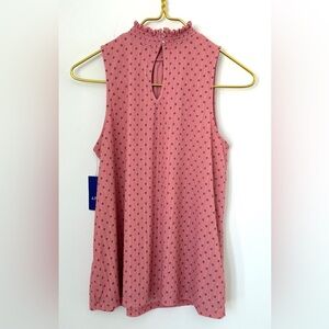 NWT Apt. 9 Pink Polka Dot High Neck Stretch Lined Sleeveless Blouse Size Small