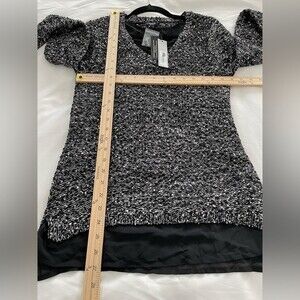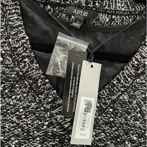 NWT Apt. 9 Sweater Black Grey Sequin Infused V-Neck Long Sleeve Top Size Small