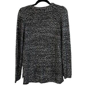 NWT Apt. 9 Sweater Black Grey Sequin Infused V-Neck Long Sleeve Top Size Small